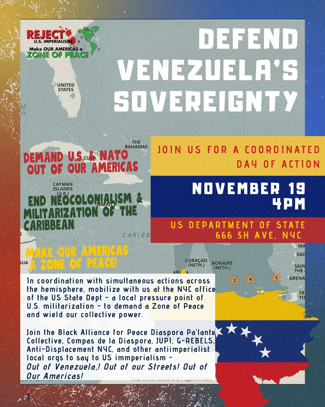 Join the Black Alliance for Peace Diaspora Pa’lante Collective, Compas de la Diaspora, JUPI, G-REBELS, Anti-Displacement NYC, and other antiimperialist local orgs to say to US imperialism -