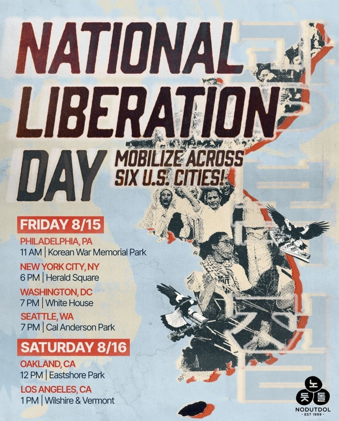 On August 15th, SIX cities across the US will mark the 80th anniversary of Korea's liberation from Japanese colonialism with a national day of action for the US Out of Korea campaign.