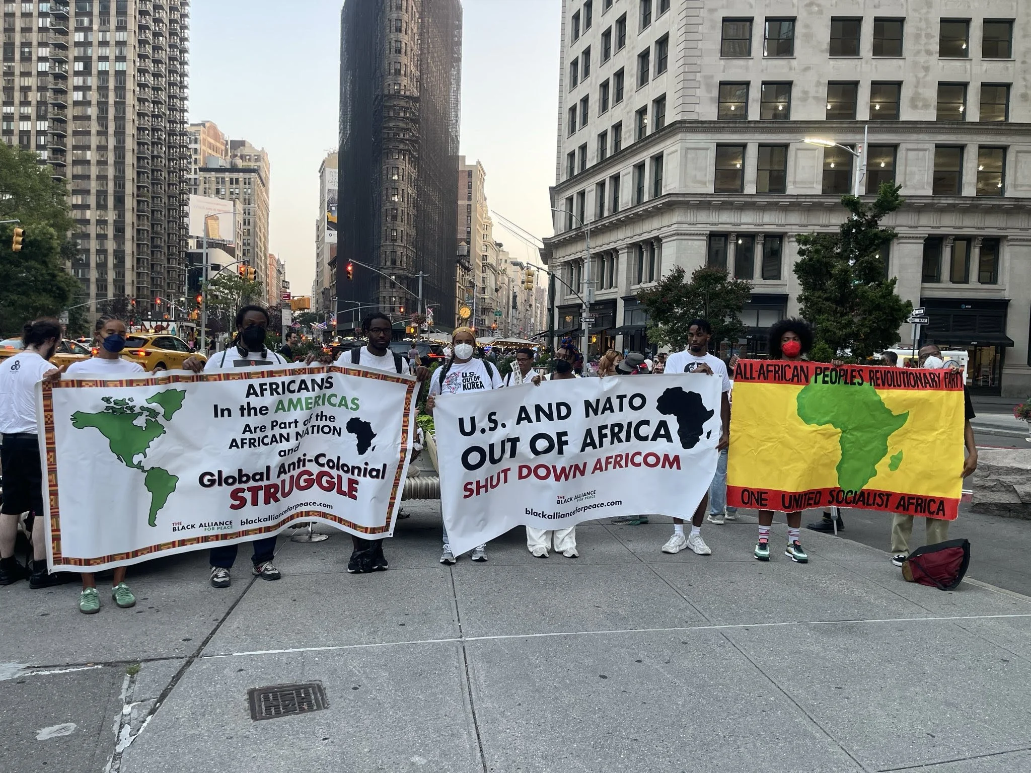 On August 15, 2025, members of BAP NYC/NJ attended the Korean National Liberation Day Rally hosted by BAP Solidarity Network member organization Nodutdol. The rally commemorated Korea’s liberation from Japan in 1945, while simultaneously calling for the end of U.S. military occupation of Korea in 2025. BAP NYC/NJ participated in two key ways: First, member Josh delivered a speech, making connections between the US out of Korea Campaign and all three of BAP’s campaigns. Second, marching from Herald Square to Madison Square Park, members carried banners with messaging about shutting down AFRICOM and Africans in the Americas being a part of a global anti-colonial struggle.